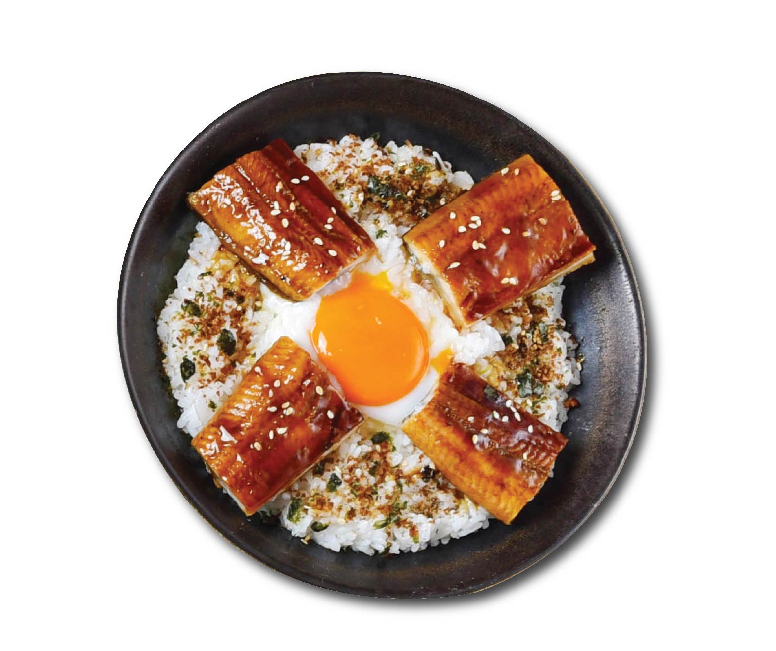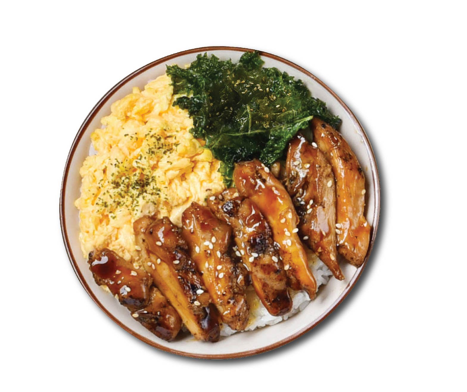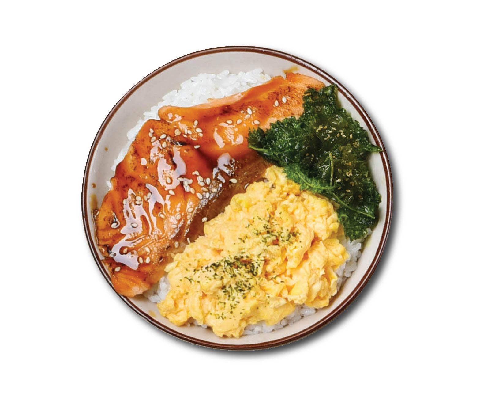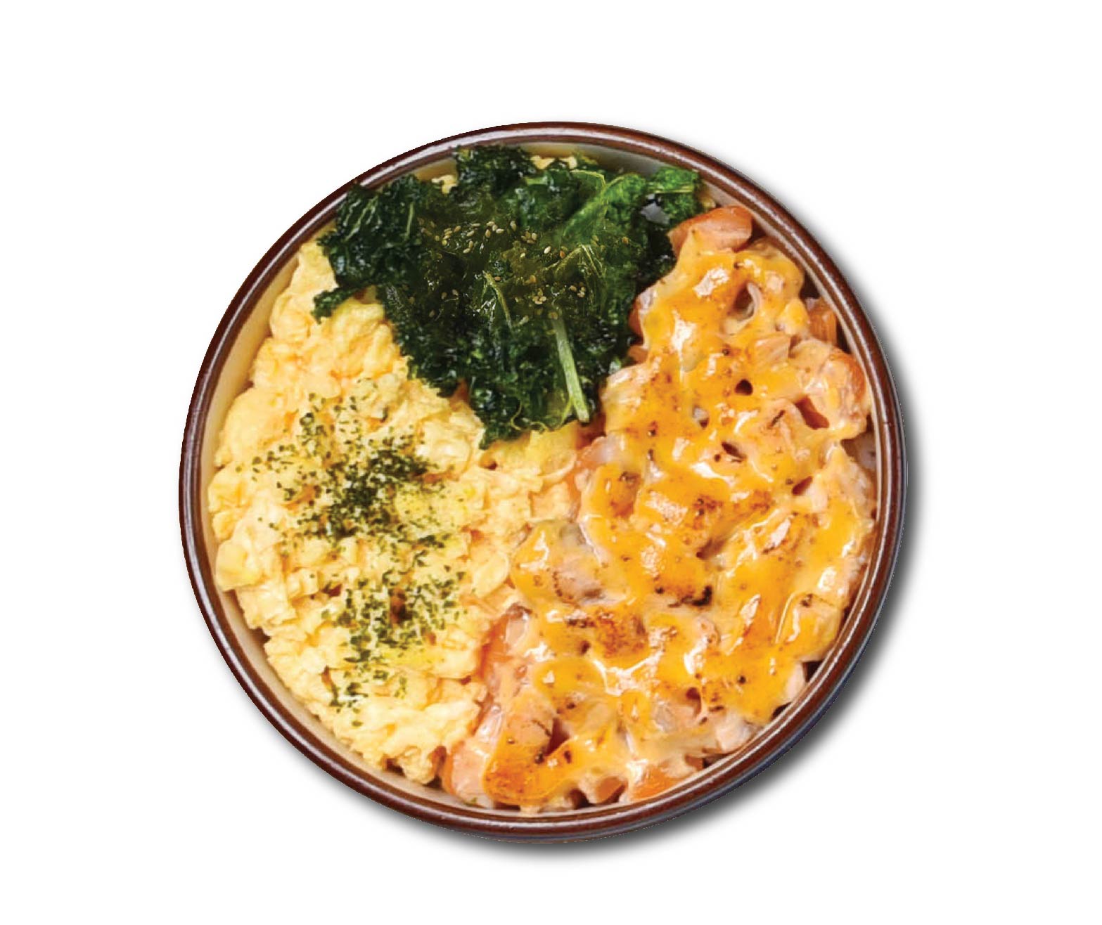 A delicious meal set in a bowl of rice served with topping meats. A perfect lunch for a busy day!